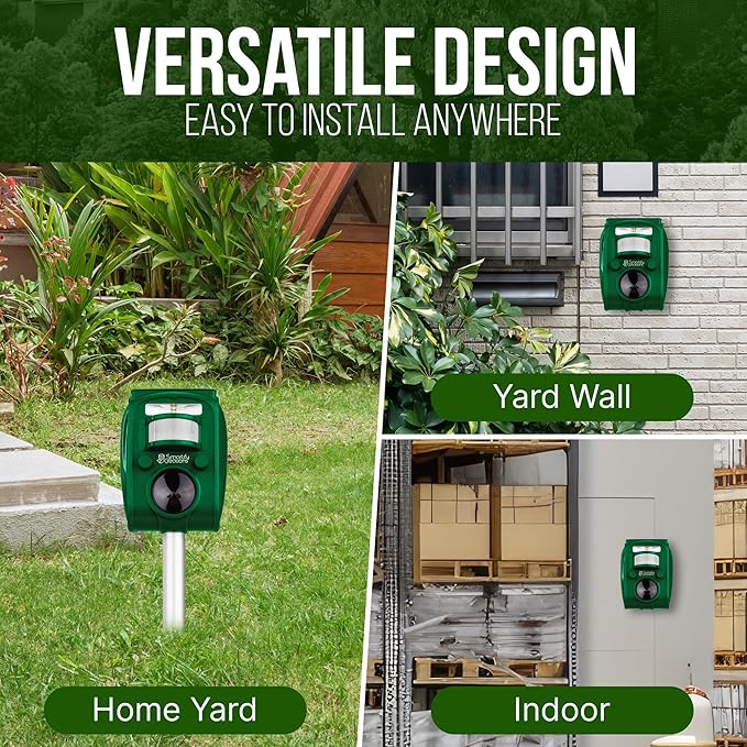 • Nature-Friendly Solution: The skunk repellent for the yard uses sound and LED lighting to deter rodents, cats, dogs, skunks, mice and other animals from entering your property, without causing any harm to them or the environment.