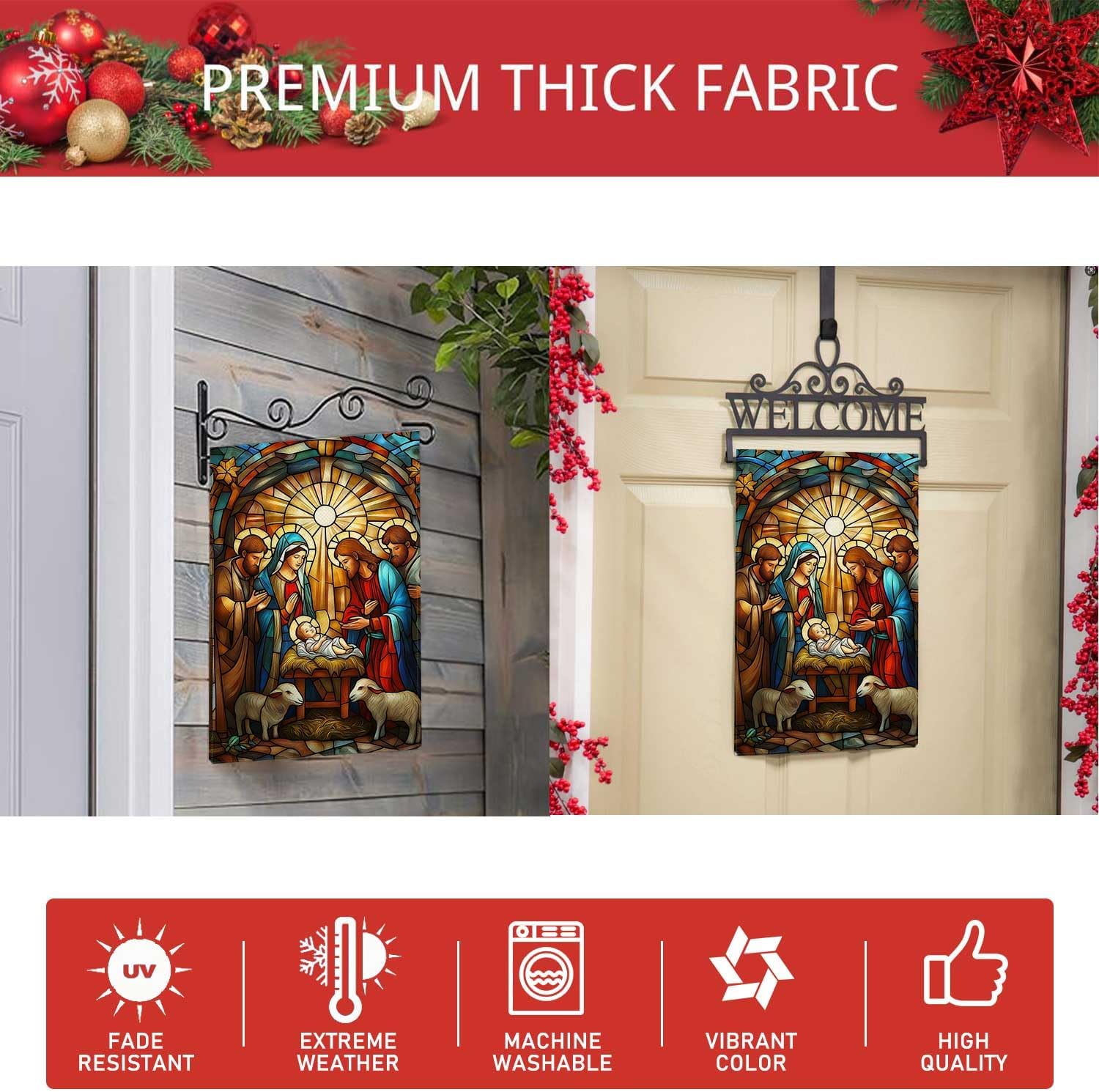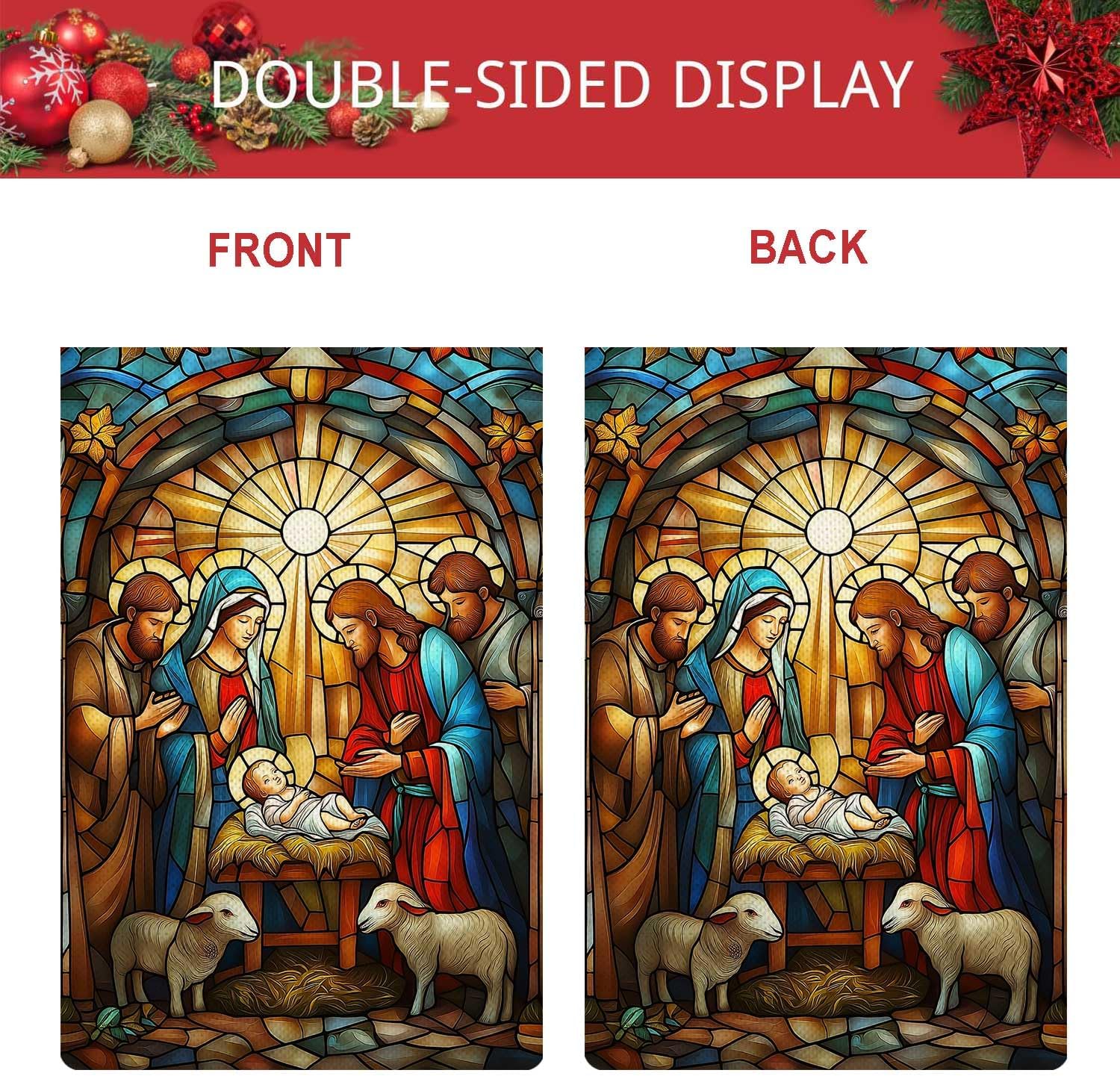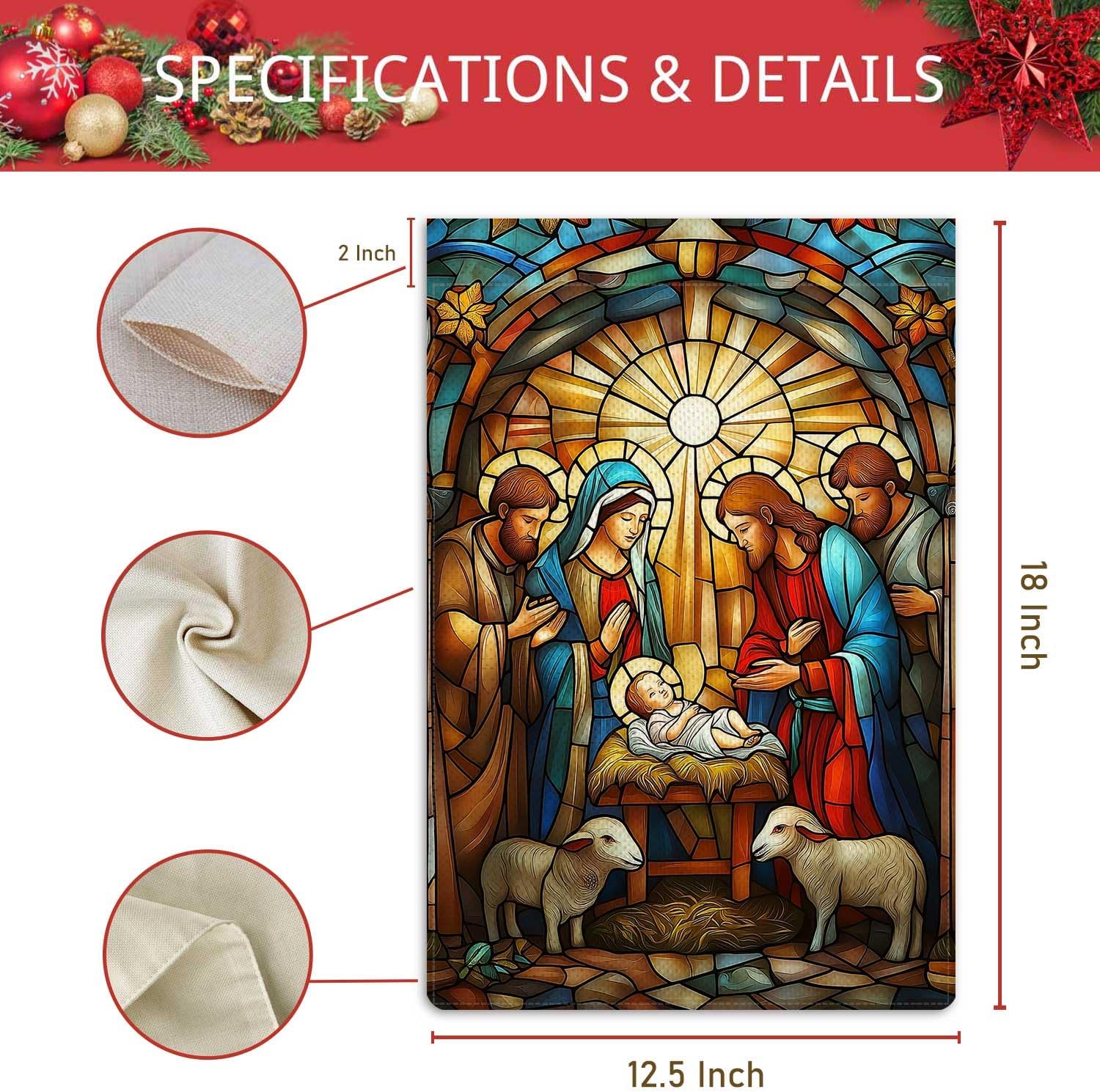 O Holy Night Garden Flag Jesus Birth Nativity Night Small Flag for Outside Stained Glass Style Burlap Double Sided Welcome Yard Lawn Winter Decor 12.5x18"