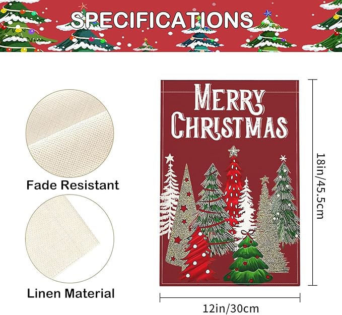 Christmas Trees Garden Flag, Merry Christmas Yard Flag Double Sided Weather Resistant Outside Decorative Flag for Patio Lawn Home Courtyard 12x18inch