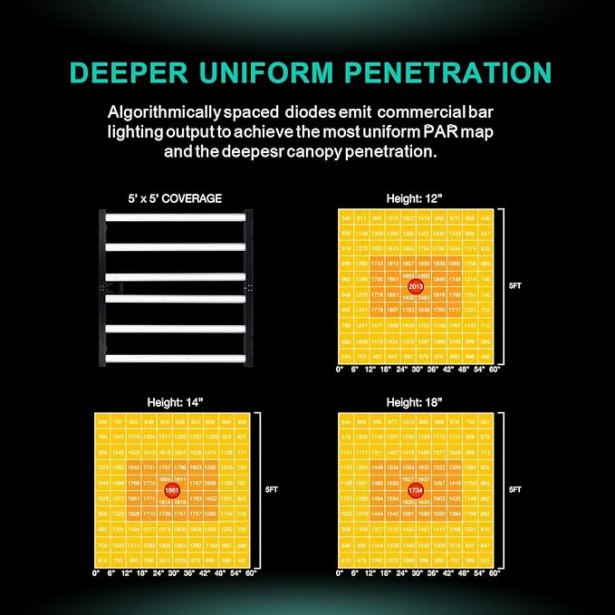 • AMAZING HEAT DISSIPATION & ADVANCED FOLDING - Light bar style and aluminum material can contribute to better airflow and great heat dissipation, ensure longer lifetime and lower energy bill. This plant growing light is foldable, it can be folded up to 180°,easy to be carried and installed. With 6 led grow light bars, each bar is covered with high-grade glue, easy to clean.