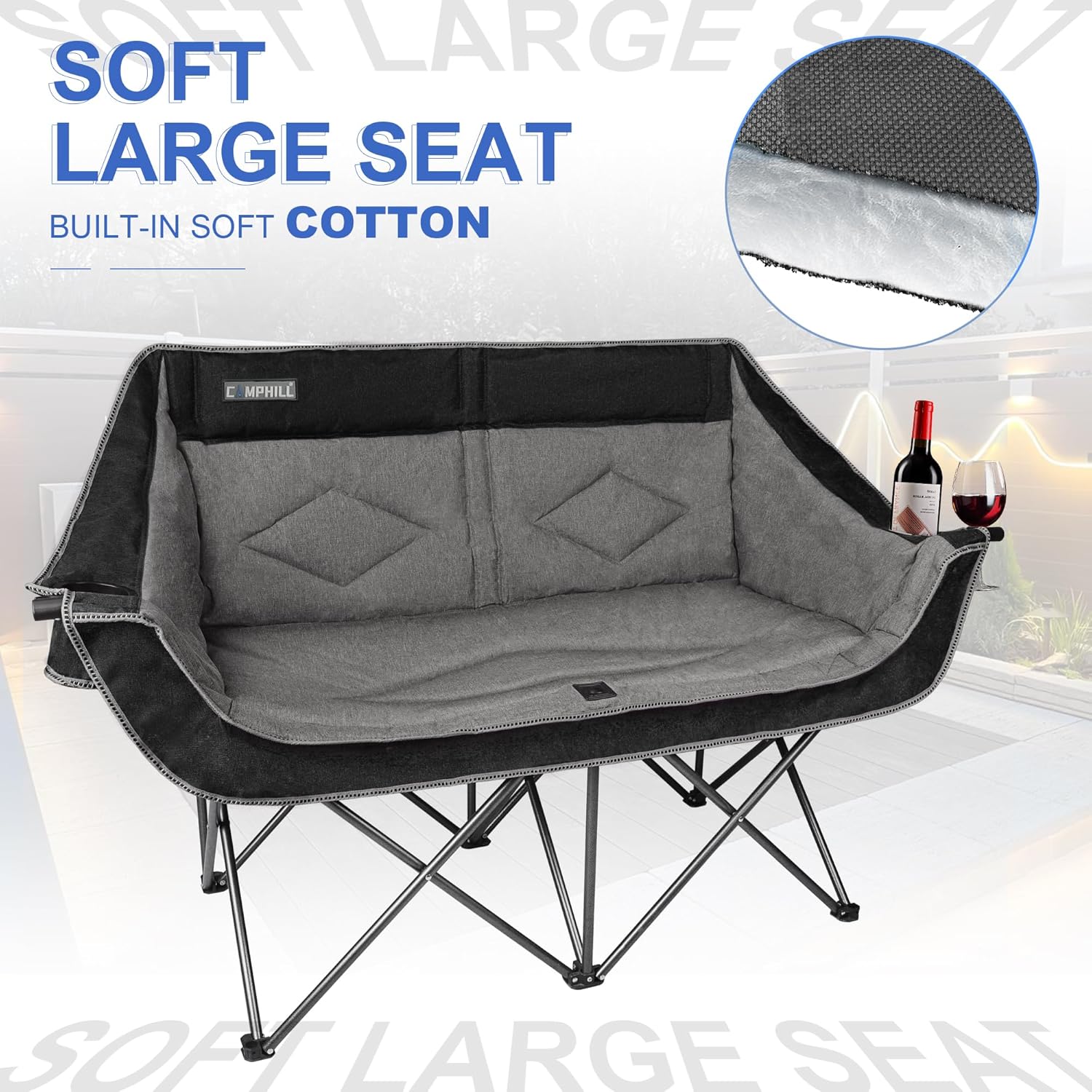 Oversized Double Camping Chair-Heavy Duty 2 Person Folding Loveseat Camp Couch for Adults,Portable Outdoor Lawn Chairs with Padded Seat for Fishing,Sports and Patio,Supports 500 LBS,Black