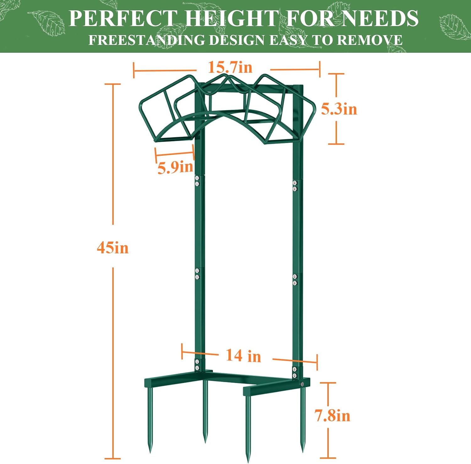 • 【Upgraded Structure】The wider and higher arch design of garden hose holders for outside allows for better accommodation of hose bending and winding. Groove of water hose holders for outside allows the user to flexibly store and organize the water hose or ther item. And the lengthened 7 inch spikes and square base structure ensure that the water hose will not be loosened with the increase of the weight.