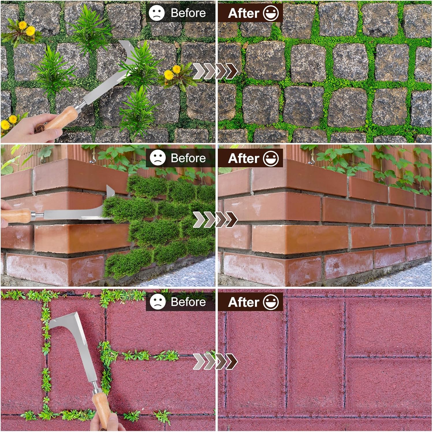 • 5. Versatile and Practical: This driveway crack weeder is suitable for various outdoor surfaces, including concrete, pavement, and brick, making it a versatile tool for all your weed removal needs.