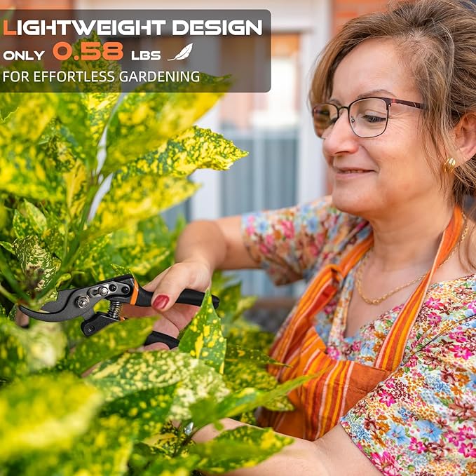 • POWERFUL LEVER CUTTING TECHNOLOGY: Garden shears feature an innovative lever cutting design that triples the cutting force, making it effortless to prune thicker branches. Perfect for branches up to 1 inch in diameter, the lever mechanism enhances cutting power through an optimized structure, allowing you to handle thick, wet, or dry wood with ease