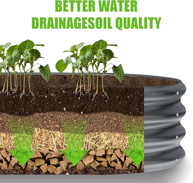 • STABLE AND DURABLE: Inside our raised beds for gardening, ten pull rods are added, which greatly increases the stability of the product. In addition, the galvanized planter is made of thickened steel and evaluated coated paint, which can stand up to the sun and rain, won't rust or corrode, and has a super long service life.