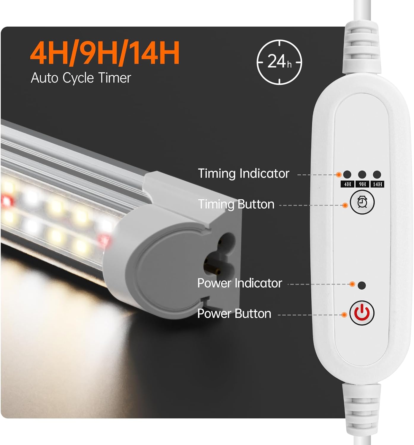 • Convenient Timer Function - The built-in timer allows you to set the grow lights to automatically turn on and off at your preferred intervals (4, 9, or 14 hours), ensuring your plants receive consistent care, whether you're on vacation or busy with work.