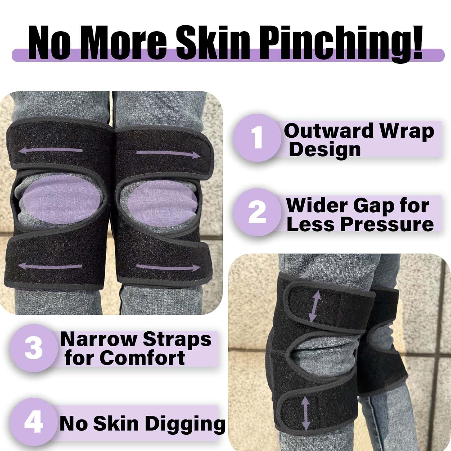 - NARROWER STRAPS & STRONGER ADHESION: We shortened the width of the floor washing knee pads straps to reduce pinching discomfort when the knee is bent, and lengthened the hook and loop straps for a wider adjustment range and stronger attachment. The adhesive strap design allows you to adjust the tightness according to your leg circumference and comfort, and it fits your knees securely and makes it easier to put on and take off