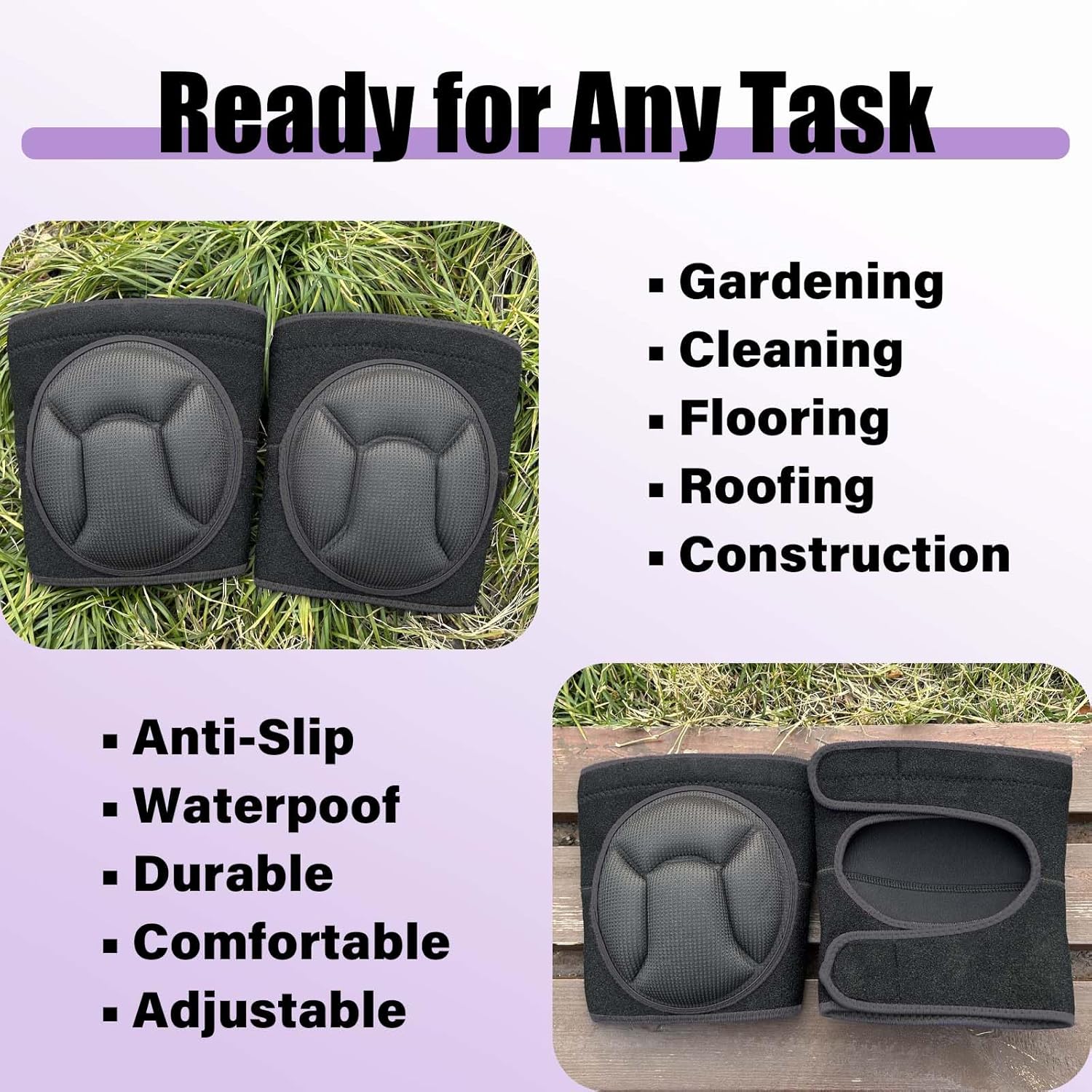 - WIDE RANGE OF USES: There are many scenarios where this safety knee pads can be used in your daily life. Such as: garden maintenance, planting flowers, weeding, laying lawns, scrubbing floors, cleaning carpets, laying carpets and tiles, painting floors, roof repairs, attic cleaning, installing floor heating, mechanical maintenance, home installation, cleaning shelves, painting, DIY, etc. Wear this housekeeping knee pads when you need extra protection and make it your loyal protective partner for everyday tasks