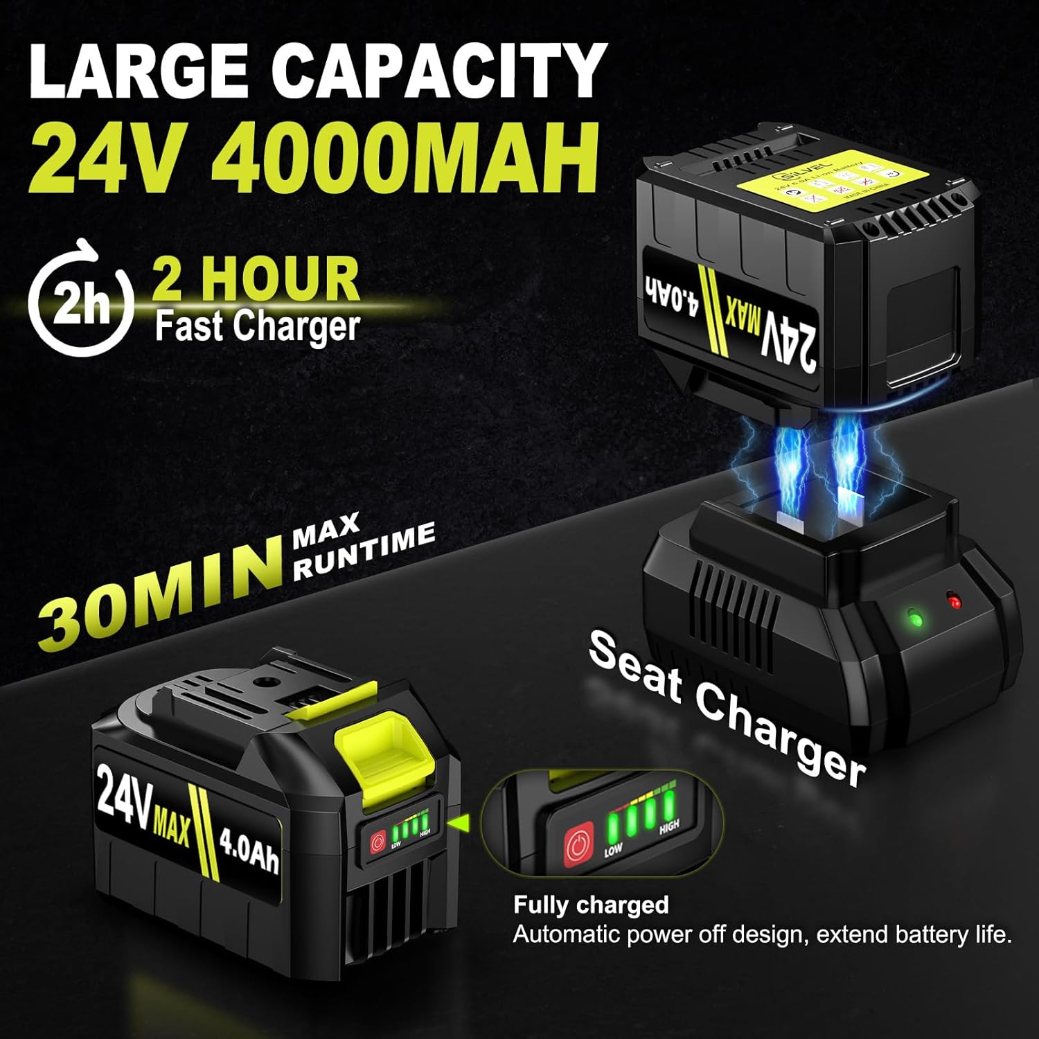 • 【Package Contents & Warranty】 The package includes 1*leaf blower body, 1*blower tube, 1*extension nozzle, 2*24V-4.0Ah batteries, 1*Fast charger, 1*user manual. We provide you with 2 years warranty. If any problem, please feel free to contact us. We are on standby for everyone - reach out anytime for support.