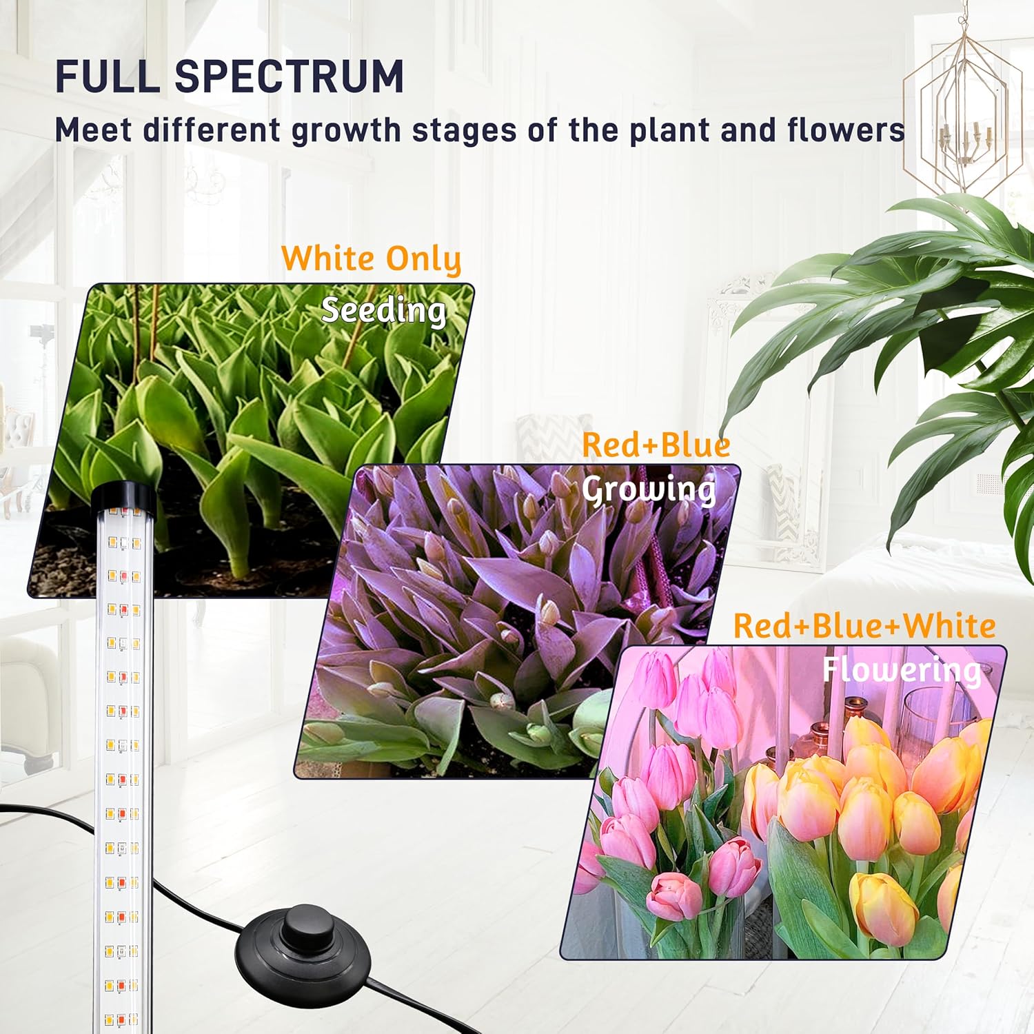 • Super Wide Illumination Area: These standing grow lights for indoor plants are 48 inches tall, have two packs, 240° lighting plants,make sure that the plants get plenty of light, this LED plant lamp meets the diversified needs of your greenhouse