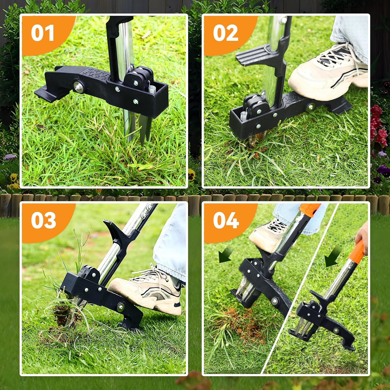 • 【Stand-Up Weeding - No Bending or Kneeling】:Remove weeds standing up with the foot pedal design – no more back pain or sore knees! The ergonomic handle fits all heights (4'9" to 6'5"), perfect for seniors and anyone.