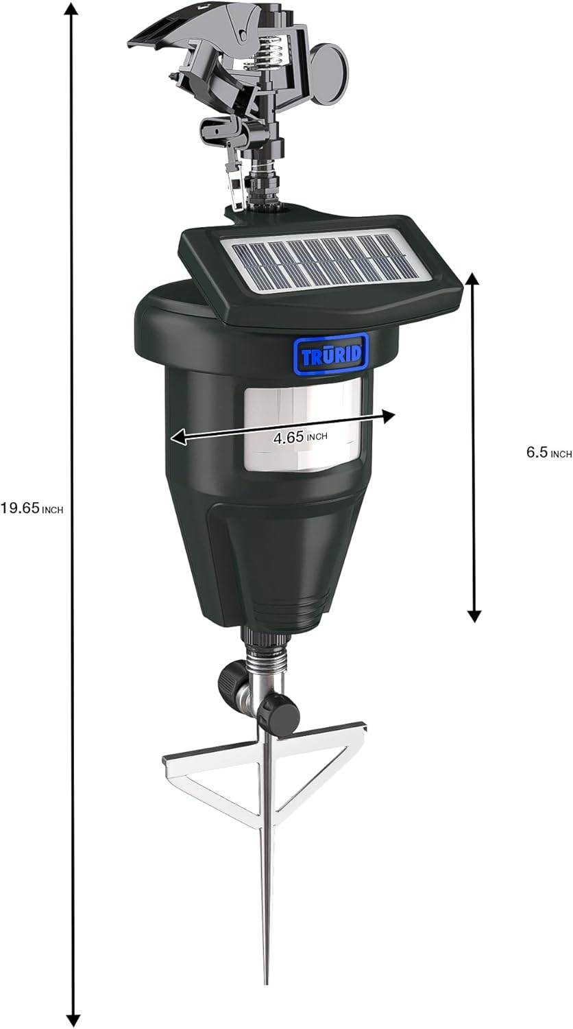 • Durable Metal Stake & Easy Setup – Heavy-duty metal stake ensures stable ground placement. Quick-connect hose fitting for fast installation — instantly transforms your garden into a raccoon deterrent, rabbit repellent, and scarecrow for garden system.