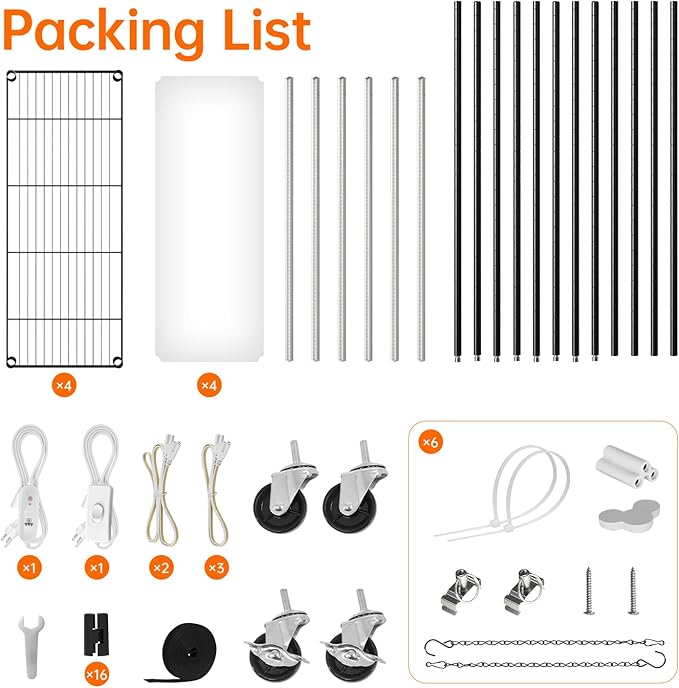 • Advanced Full Spectrum Grow Lights - Equipped with six 15W full-spectrum grow lights, this rack mimics sunlight to cater to your plants' various growth stages. Each light delivers output of 125.2 μmol/㎡/s at 4 inches away, promoting faster and healthier plant development