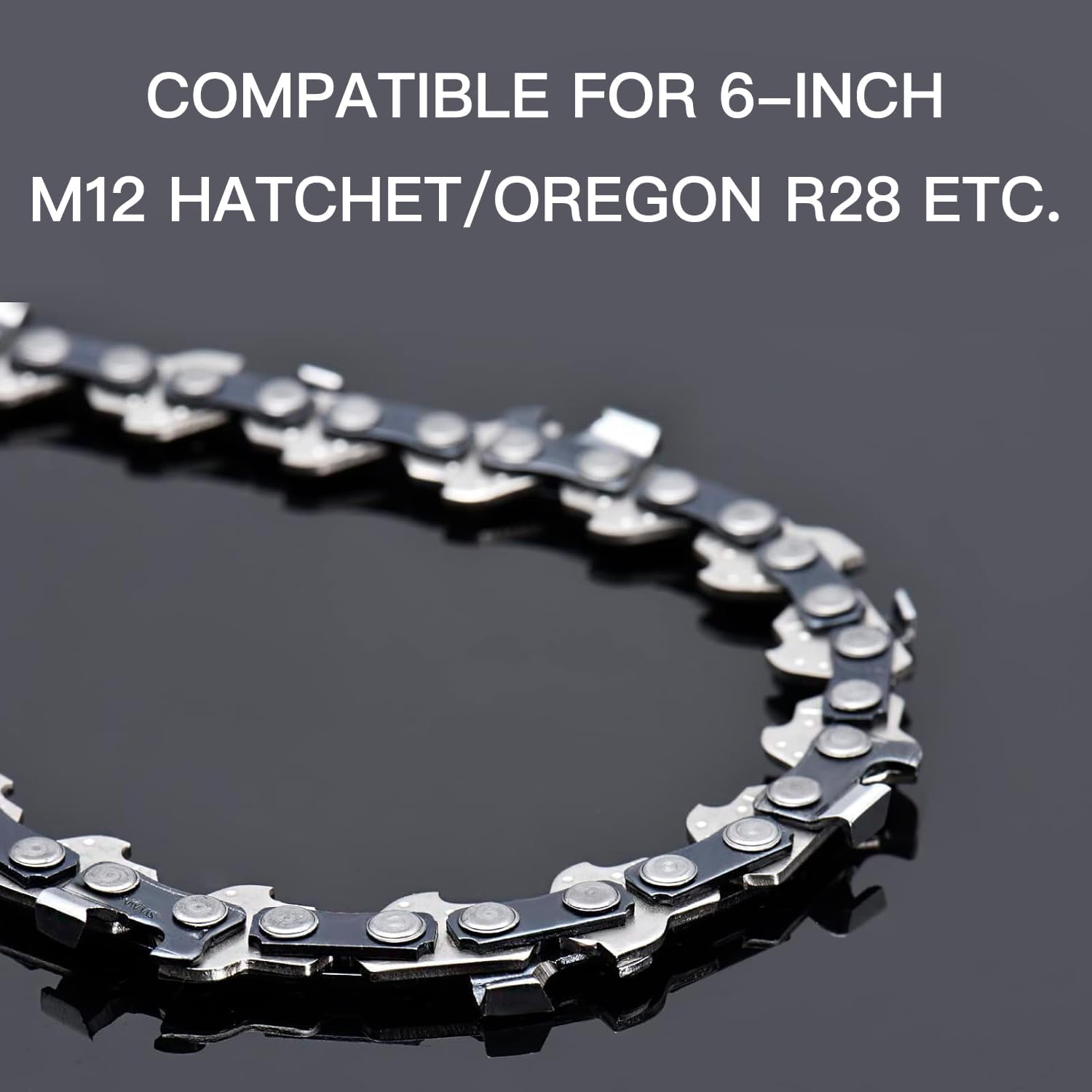 • Features: Low-kickback and sharp saw chain, The 6 inch saw chain R28 met the kickback performance requirement of ANSI Standards. Germany steel, Durable, Wear-resistant, Cutting smoothly. Easy to install and replace.