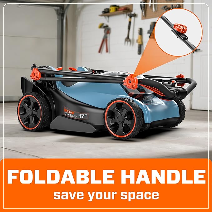• EFFORTLESS MOWING: The SENIX 2X2 battery lawn mower features a 17-Inch cutting width and compact poly deck with rear bagging; 2-in-1 mowing feature allows you to either mulch or bag grass clippings; Great for mowing for small to medium size yards