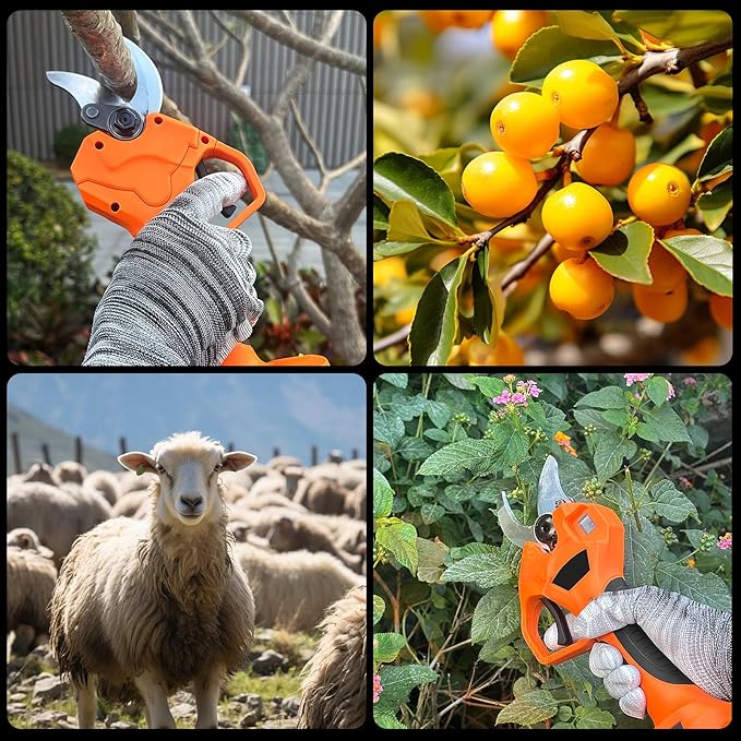 • 【CONVENIENT & WIDE USE】Cordless electric pruning shears weighs only 1.2kg(one battery included), its portable design enables users to operate it in a long time and will not easily feel tired. This cordless prunning shear is friendly for women, elderly people,weak wrist or arthritis users. It can be used in a variety of gardens, parks, farms, large pastures, orchards, greenhouses, etc. Its efficiency is 10 times that of manual pruning shears.