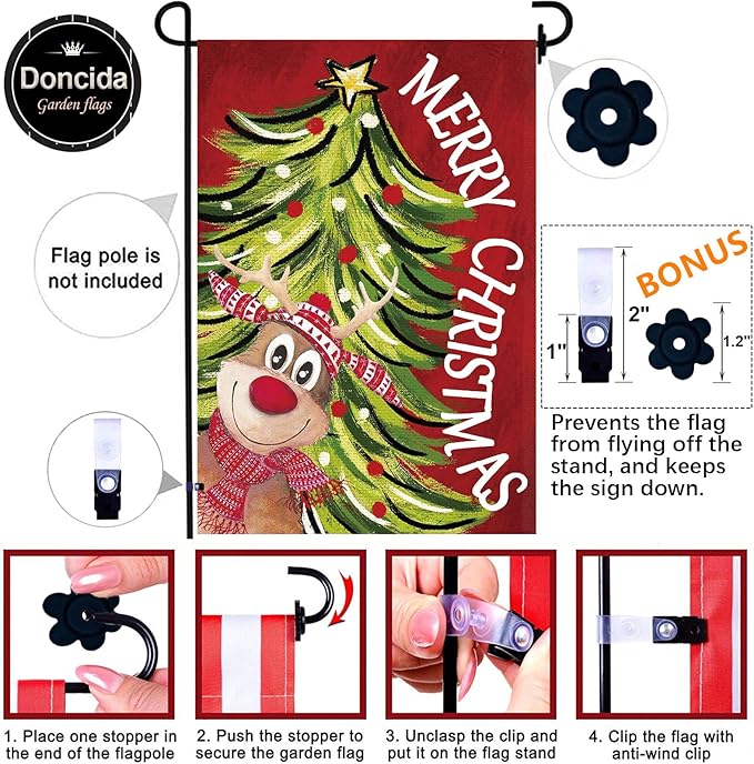 Doncida Seasonal Garden Flags Set of 12 Double Sided Double Stitching 12x18 Inch, Fall Halloween Christmas Yard Flags for Outside Decor, Includes Free Anti-Wind Clip and Stopper