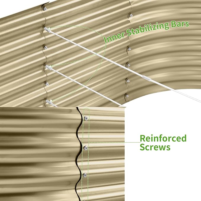 • Moisture-Resistant and Durable: Our galvanized steel raised garden bed offers superior zinc coating for enhanced protection against rust, crafted from premium galvanized steel for unparalleled durability and resistance to corrosion. Engineered for optimal plant health, the high-quality galvanized material also reduces the risk of root rot and improves soil quality.