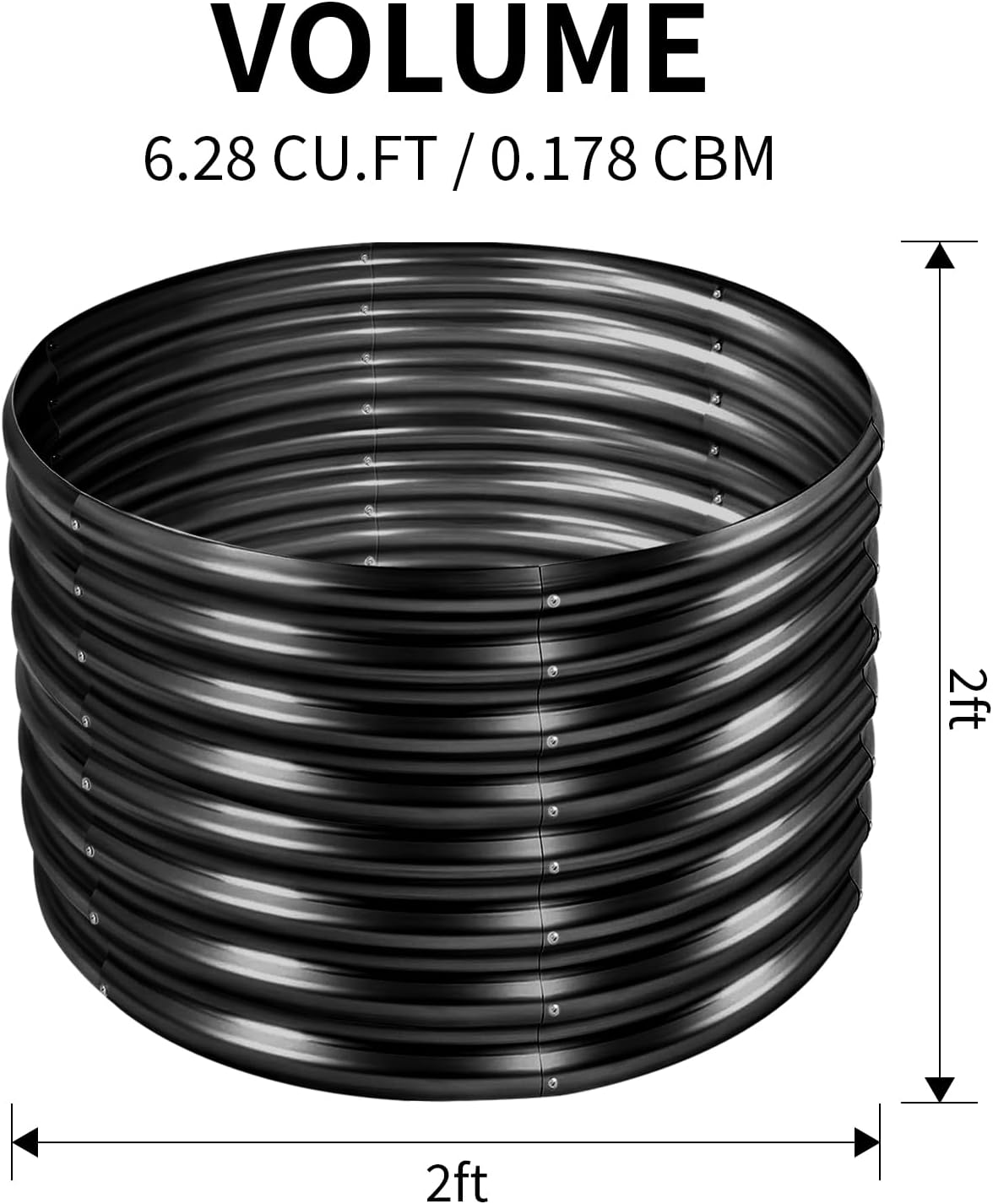 Land Guard 2×2×2ft Galvanized Raised Garden Bed Kit, Round Galvanized Planter Raised Garden Boxes Outdoor, Large Metal Raised Garden Beds for Vegetables, Grey