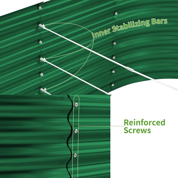 • Moisture-Resistant and Durable: Our galvanized steel raised garden bed offers superior zinc coating for enhanced protection against rust, crafted from premium galvanized steel for unparalleled durability and resistance to corrosion. Engineered for optimal plant health, the high-quality galvanized material also reduces the risk of root rot and improves soil quality.