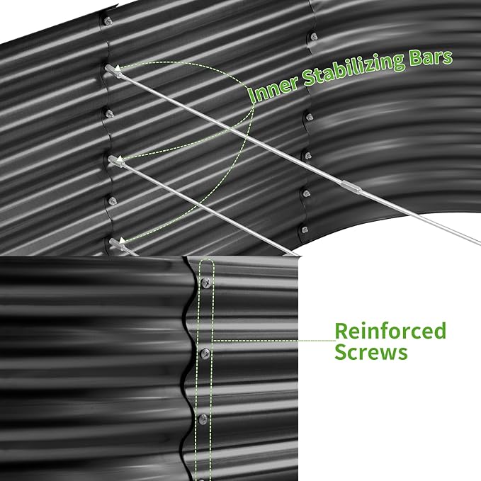 • Moisture-Resistant and Durable: Our galvanized steel raised garden bed offers superior zinc coating for enhanced protection against rust, crafted from premium galvanized steel for unparalleled durability and resistance to corrosion. Engineered for optimal plant health, the high-quality galvanized material also reduces the risk of root rot and improves soil quality.