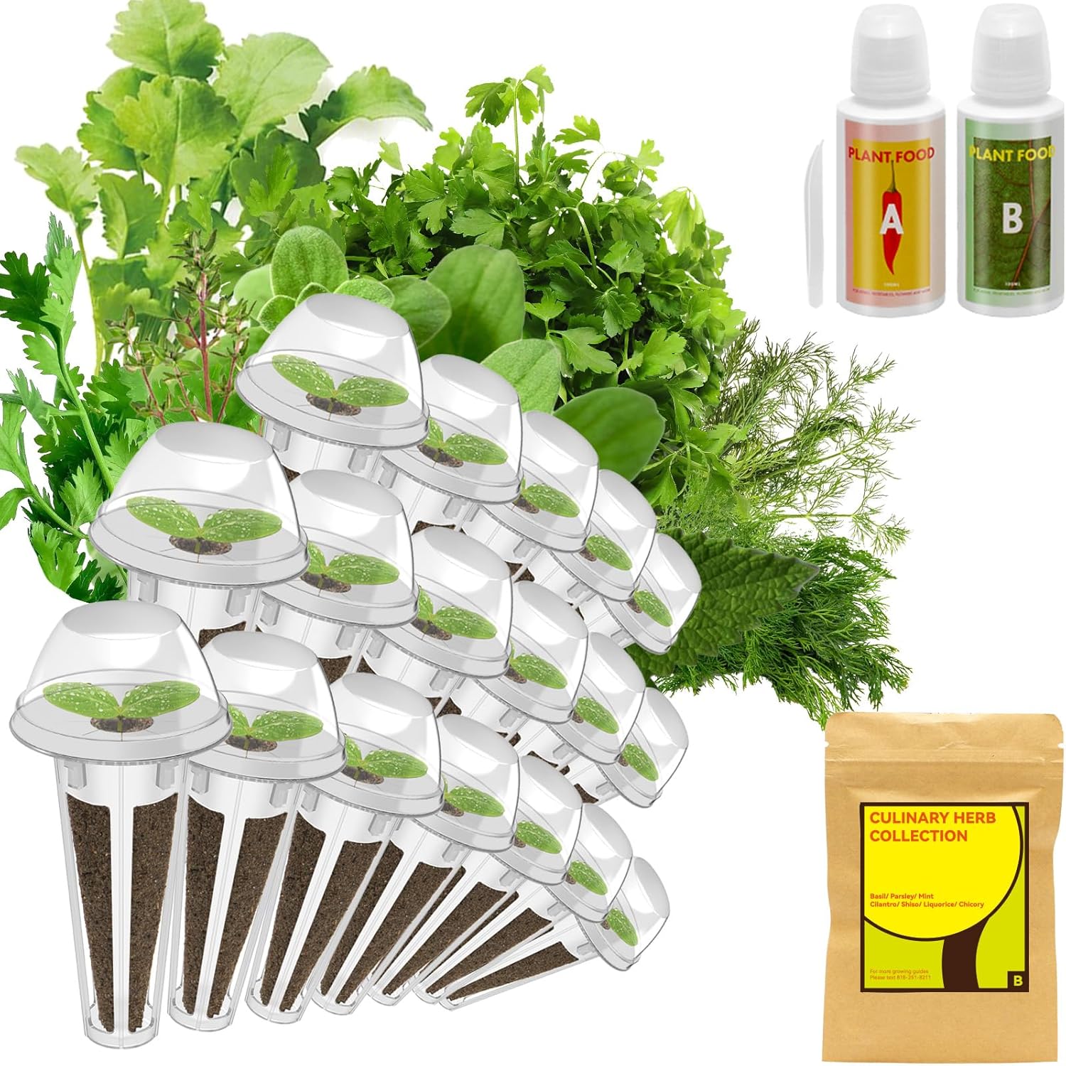 • 【All-IN-ONE Home Garden】These hydroponic pods provide everything you'll need to start your indoor herb garden. 7 types of 350+ gourmet herb seeds, 18 growing sponges, growing baskets, growing domes and pod labels, 200ml A&B plant food. It's suitable for both beginners and experienced gardeners