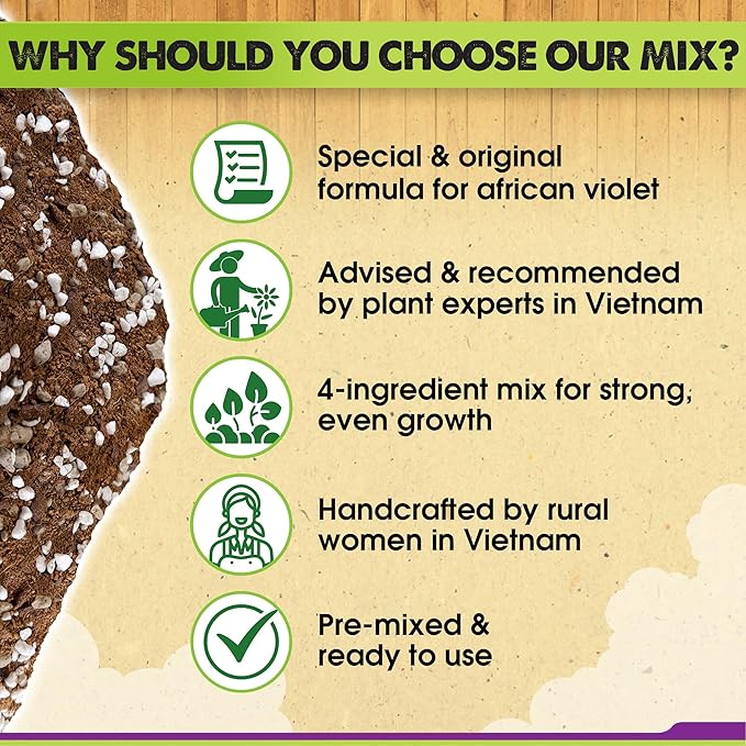 • ๐ŸŒธ Hand-Crafted & Ready-to-Use: Meticulously mixed for consistent quality, our pre-mixed african violet potting mix saves you time and effort, providing an optimal growing medium for your African violets from the very start.