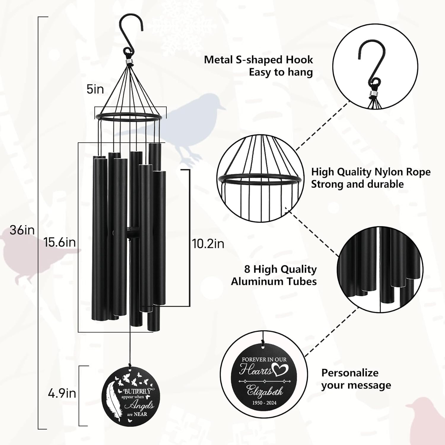 Personalized 36" Memorial Wind Chimes, Bereavement Gift to Honor a Loved One's Remembrance, Sympathy Gift for Loss of Mother Father Husband, for Outdoor Garden
