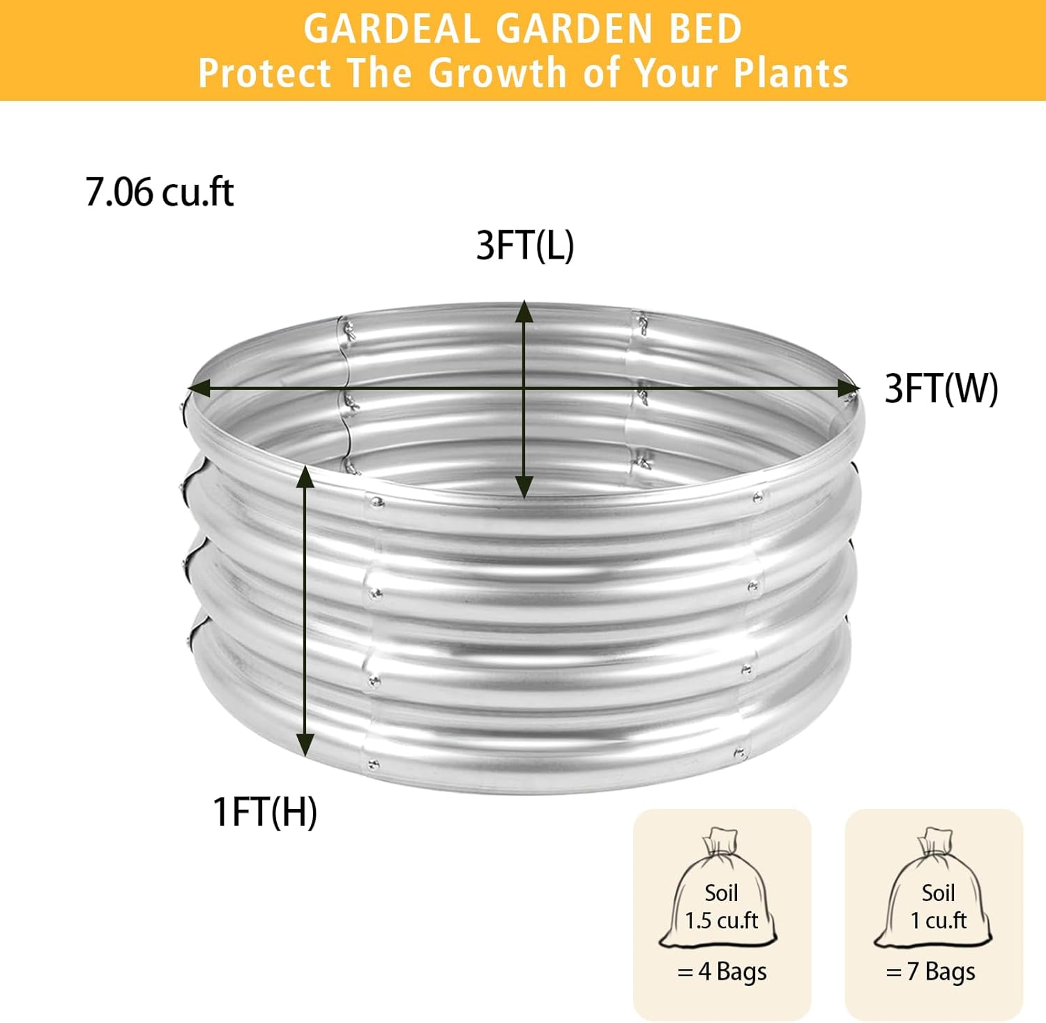 Garden Galvanized Raised Garden Bed Kit - Metal Planter Boxes for Vegetables/Herbs/Flowers, Heavy-Duty Steel Outdoor Garden Box with Reinforced Edges(3X3X1FT)