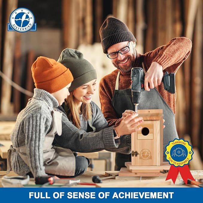 • HIGH-QUALITY MATERIALS: SISTERBIRD birdhouse kit use untreated, unpainted cedar. Bluebird houses for outside front clean has a rough surface, and nesting boxes can give birds a foothold as they enter and exit the bird nest. Bird houses for outside clearance also can keep out weather-related damage