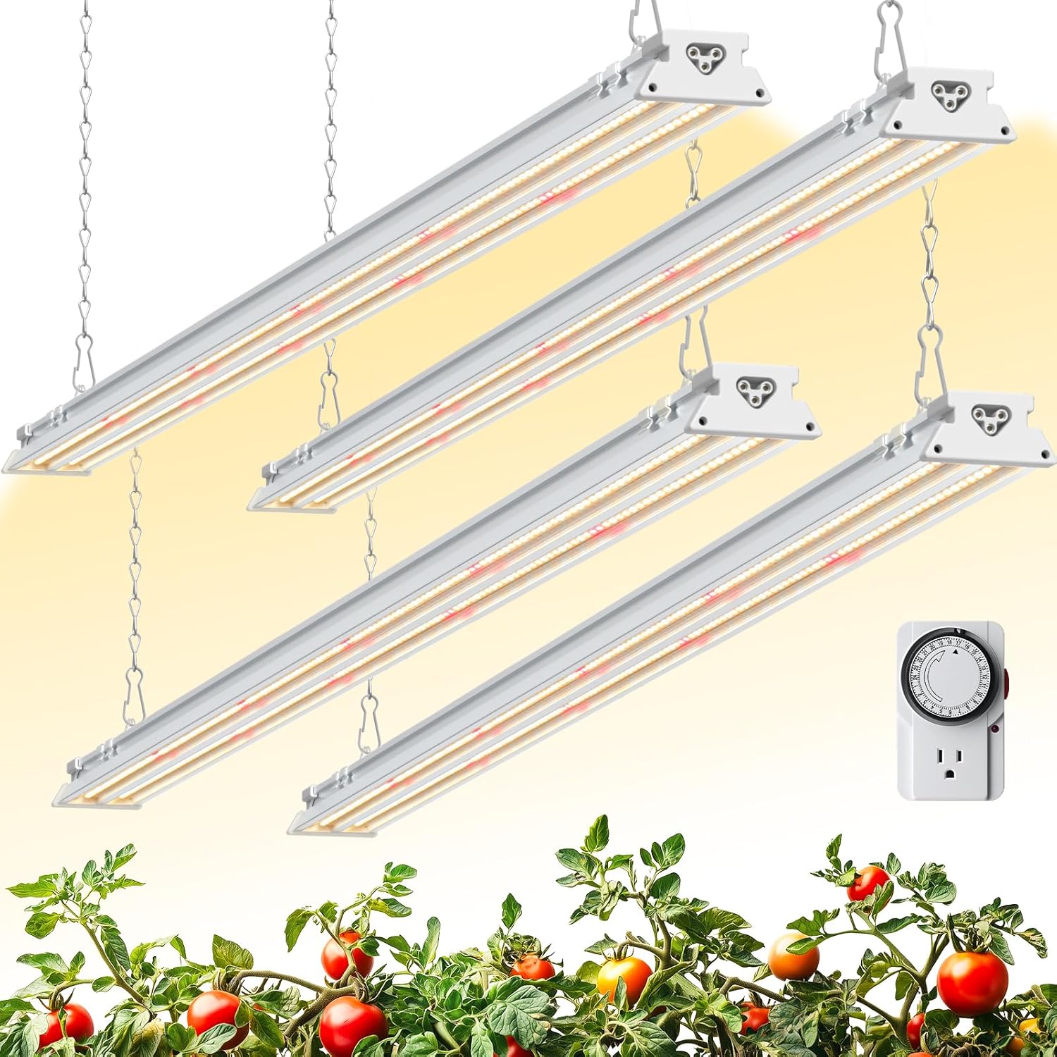 • Accurate Timer Control for Effortless Operation: Our LED hanging grow light comes with a mechanical outlet timer, providing your plants with the ideal light even when you're away. Program it once for 24-hour cycle, with intervals as short as 15 minutes. After setup, your plants are automatically cared for daily