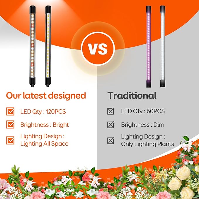 • 【V-shaped Exclusive Design】2-pack Clip growing Lamp contains a total of Warm White (3000 K) + White (5000 K) + Red light (660 nm). New double upgrade, with the V-shaped special design, double lines of double light beads, double brightness as before. The lights have higher PPFD and brightness than others.