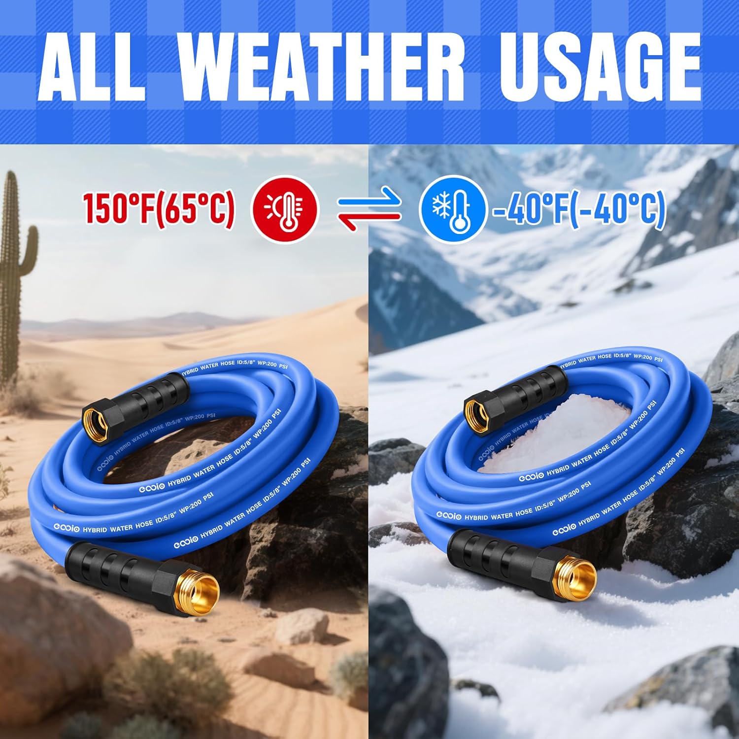 • Kinking Resistant & All Weather Flexibility Hose - No need to worry about kinks when watering, the hybrid material allows the water hose to remain flexible in extreme temperatures, defying heat or cold and remain flexible and kink resistant for prolonging using lifetime.