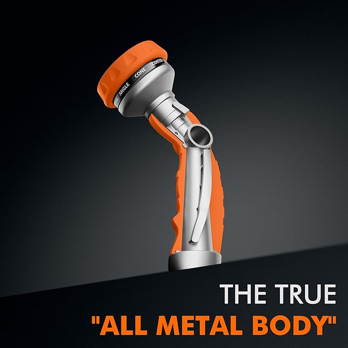• 【Heavy Duty Metal Hose Nozzle】Constructed with premium zinc-alloy material, this hose nozzle sprayer is solid & strong to resist daily drops and shocks. The bronze powder painting, TPU coating and rubberized bezel dial can enhance durability & flexibility and withstand hard impacts & heavy force. A long-lasting garden hose nozzle you can count on many years.