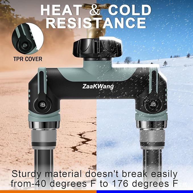 • 【Versatility】The new design of the ZaakWang diverter, made of durable and aesthetically pleasing ABS material, is compatible with all North American standard 3/4-inch faucets, garden hose fittings, and watering fixtures. It is an ideal choice for constructing a sophisticated garden irrigation system.