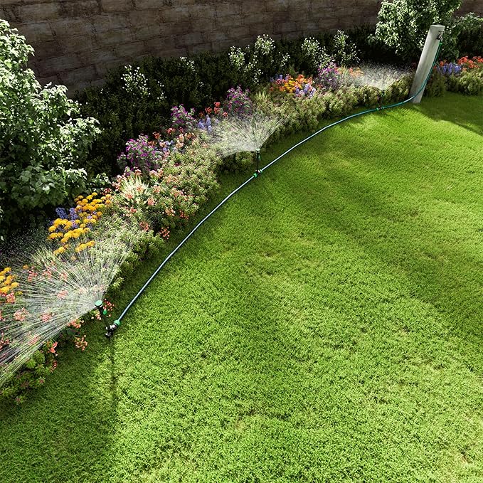 • 【Easy to Install】Easy to install and precise controls to adjust the spray angle, spray direction and water flow without moving the spikes, which are great for watering the lawn, flower beds, vegetable gardens and more. Suits any landscape design or garden shape to fit your watering needs.