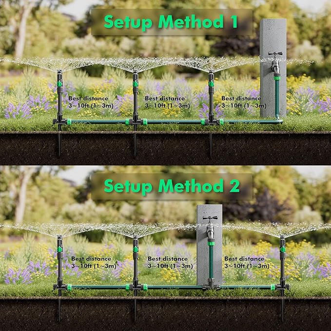 • 【Durable Material】Constructed with premium material, this sprinkler set is solid & strong to withstand hard impacts & heavy force. A long-lasting sprinkler system you can count on many years.