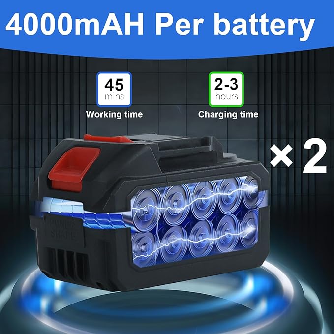 • 2*4000mAh Large-Capacity Lithium Batteries: Provide up to 45 minutes of continuous operation on a single charge, allowing you to complete large-scale cleaning projects without interruption. No more dealing with tangled power cords or running out of power halfway through your task. Ideal for a wide range of cleaning applications, from household chores to outdoor maintenance, the Huhomco Cordless Power Cleaner is your all-in-one cleaning solution