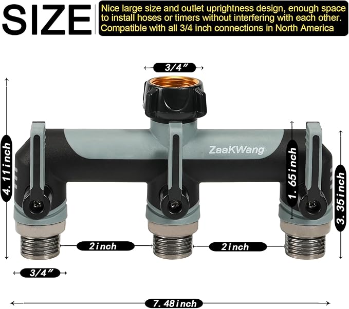• 【Versatility】The new design of the ZaakWang diverter, made of durable and aesthetically pleasing ABS material, is compatible with all North American standard 3/4-inch faucets, garden hose fittings, and watering fixtures. It is an ideal choice for constructing a sophisticated garden irrigation system.