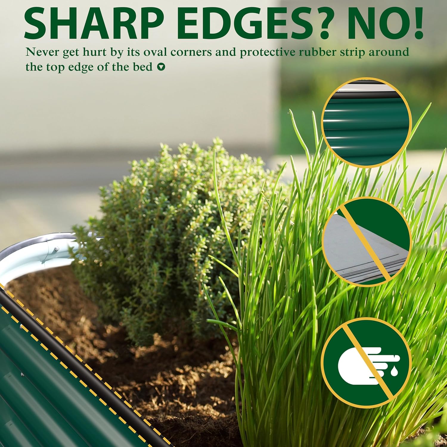 • Open-Base Raised Garden Bed-The galvanized raised garden bed outdoor for vegetables with bottomless design for better performance in water drainage on the soil or grass, making the roots of plants grow healthier. The oval growing garden planter box can be used to grow any vegetables as lettuce, beans, tomatoes, potatoes or any flowers for indoor and outdoor growing. The 11.1" tall design of garden bed requires less bending down for gardening and protects your plants from your pets.
