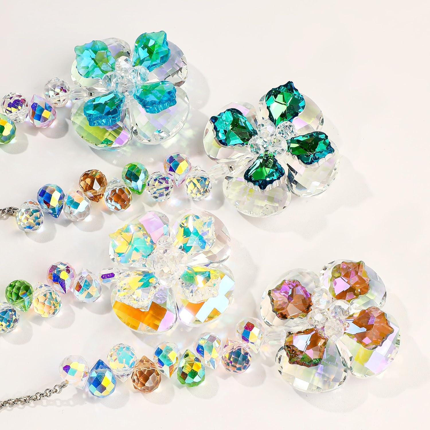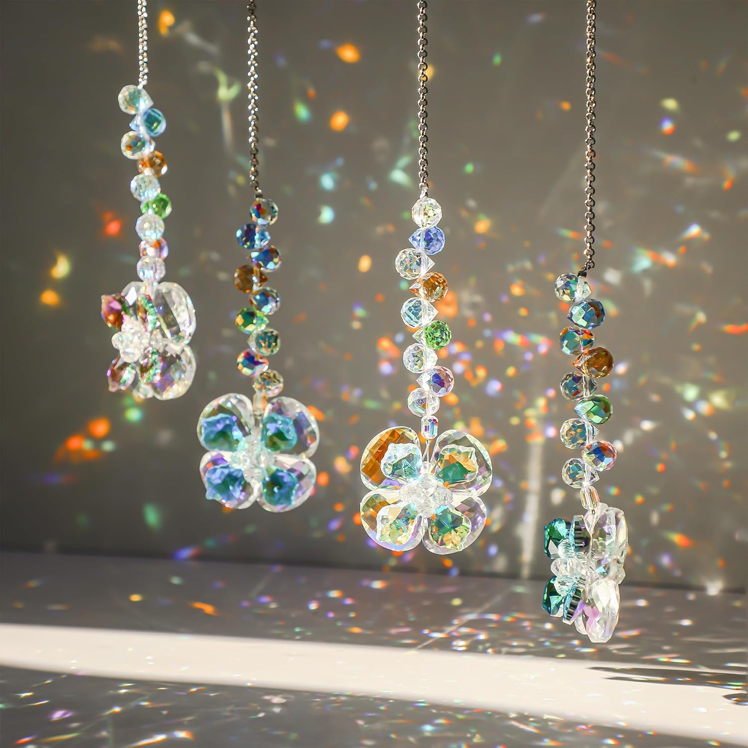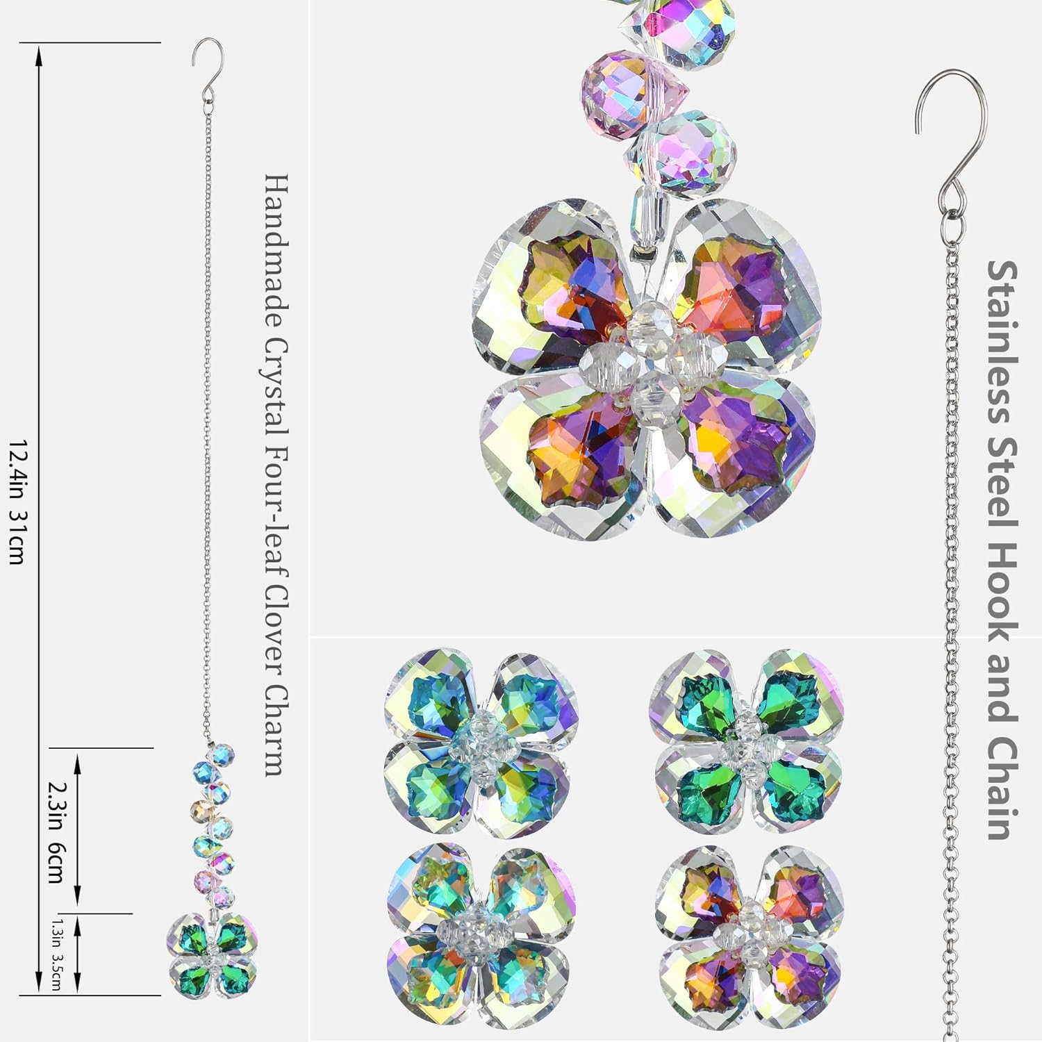 • Crystal Flower Suncatcher: Features 4pcs crystal four leaf clover in different colors, creating rainbow dots in sunlight