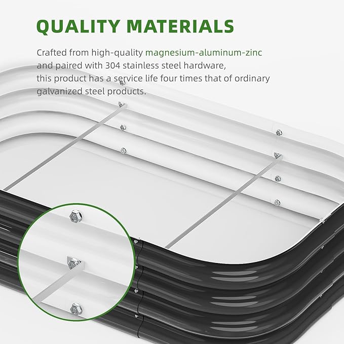• Sturdy and Durable Materials: Made from high-quality zinc-magnesium aluminum alloy steel, this raised flower bed is built to withstand the elements while providing a secure environment for your plants to thrive. With a remarkable lifespan of over 30 years, this garden bed is built to withstand the test of time.