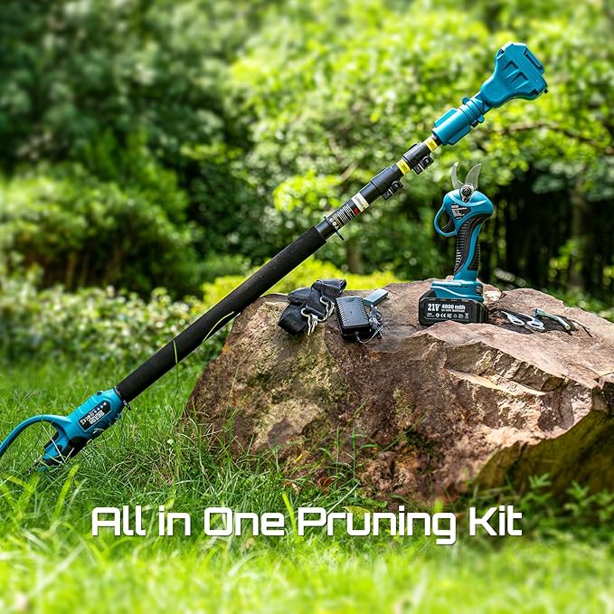 • 【2-in-1 Pole Pruner for Extended Reach】Switch between handheld and pole modes with the Seesii electric pruner. The extendable pole extends from 4.9 to 9 FT, offering up to 15 FT of reach to safely trim high branches from the ground—no ladder needed for quicker, easier tree care