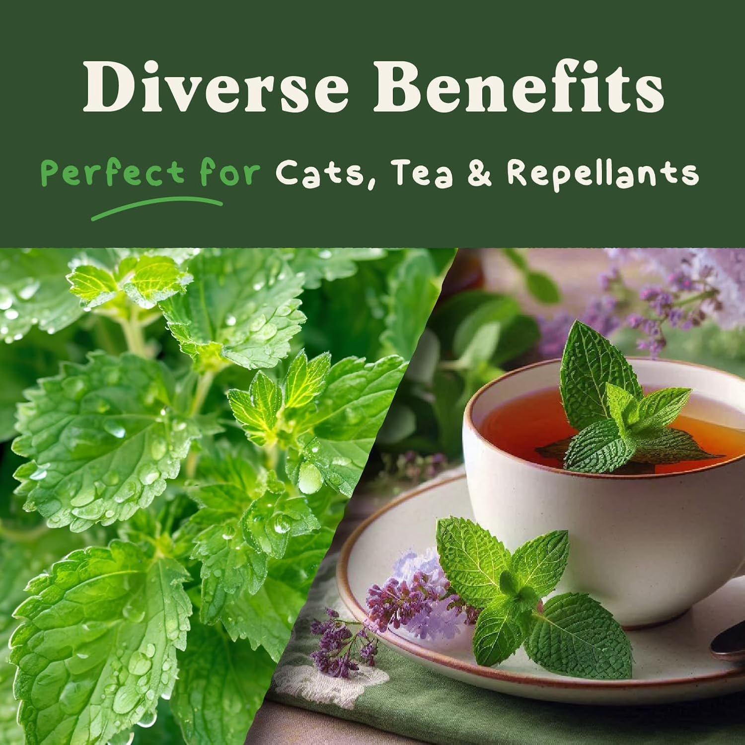 • Fresh Flavor for Your Feline Friends – Treat your cats to the delightful effects of homegrown catnip. Perfect for creating stimulating toys, sprinkling on scratching posts, or offering as a natural stress reliever for your pets. Did you know catnip is also beneficial for people? Steep yourself a soothing cup of tea or add to soups and salads for a mild minty flavor.