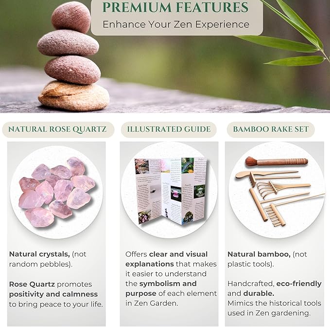 • ๐Ÿ”น Elegant Mini Japanese Rock Garden with Crystals โ€“ Inspired by Japanese garden decor, this peaceful mini zen garden brings calm and balance to your space. A stylish blend of zen decor and home decorations.