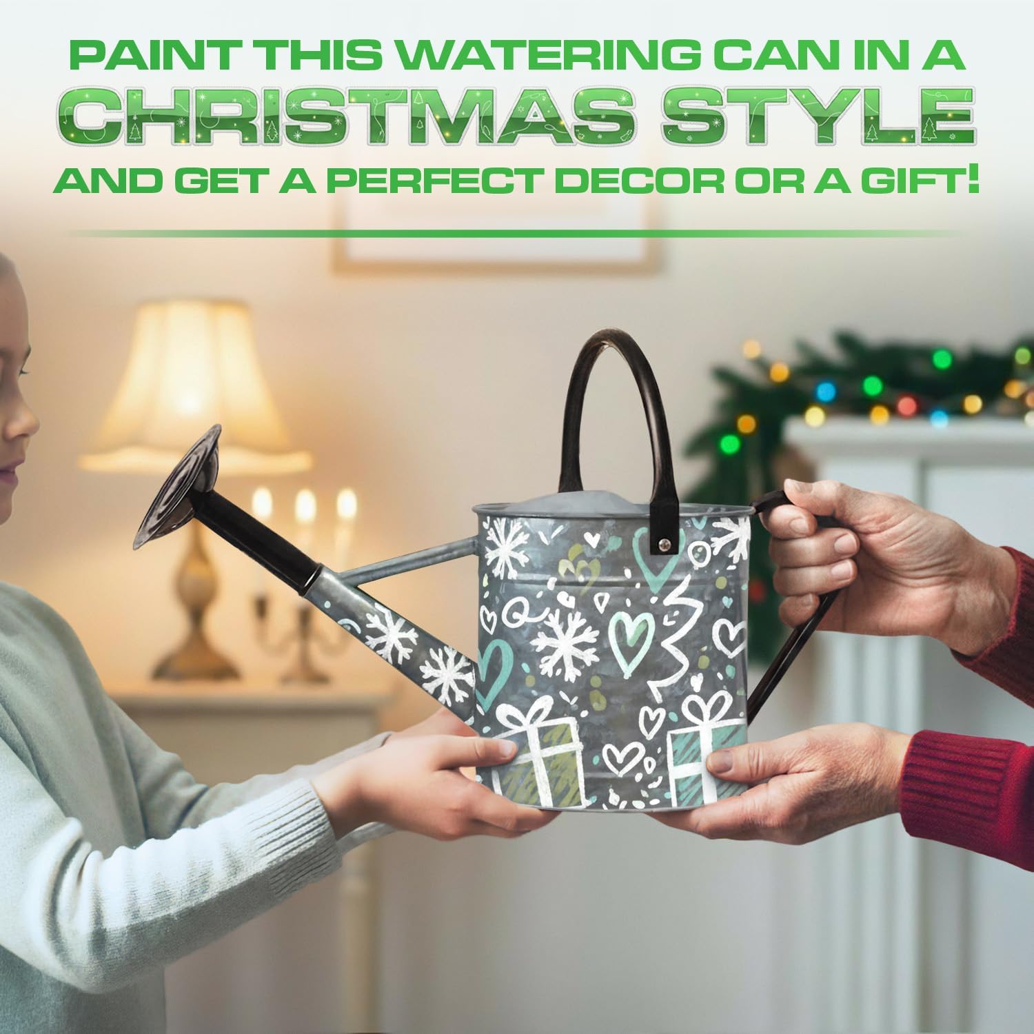 • Indoor, Outdoor Watering Pot: The metal watering cans design and galvanized steel make of the large metal watering can suitable for both indoor and outdoor use. It features two handles for added convenience — a black swivel top handle and a black fixed side handle for a secure grip.
