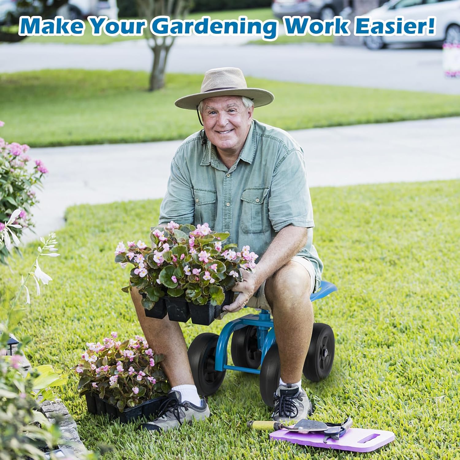 • Sturdy Structure: Made from heavy-duty metal frame, this wheeled garden stool is durable and sturdy for long lasting performance. The garden chair supports up to 330 pounds of weight! Moreover, the powder-coated finish is rustproof, making the cart withstand outdoor conditions.