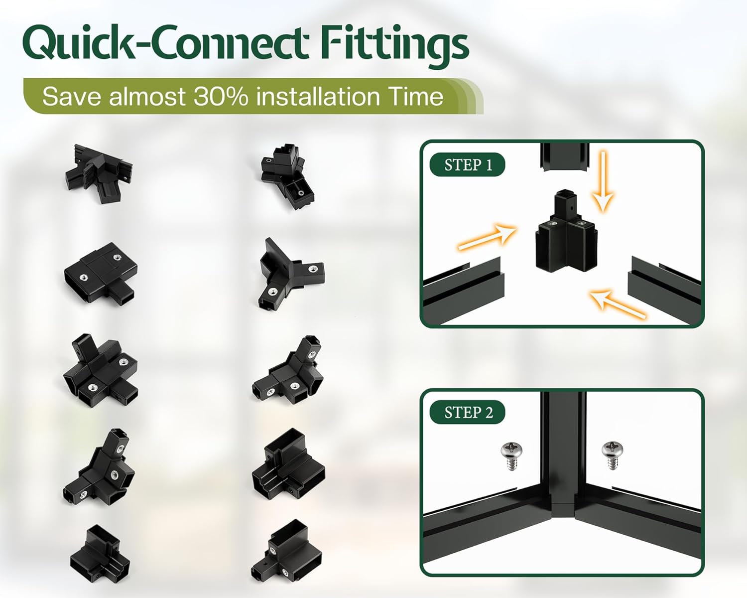 • Efficient Quick-Connect Assembly: Featuring quick-connect connectors, the greenhouse can be assembled by three people in approximately 10 hours, improving the overall assembly speed and convenience
