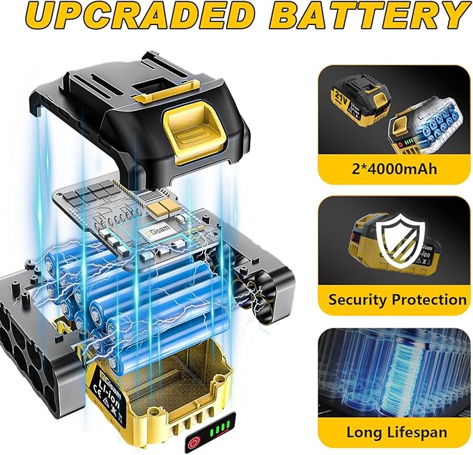 • Longlasting Running Time: With 2 * 21V 4.0Ah battery, the Gisam electric chainsaw lasts 3-4 times longer than a 2Ah chainsaw. The fast charging can fill up in 2 hours with up to 100 minutes of battery life, virtually eliminating interruptions.