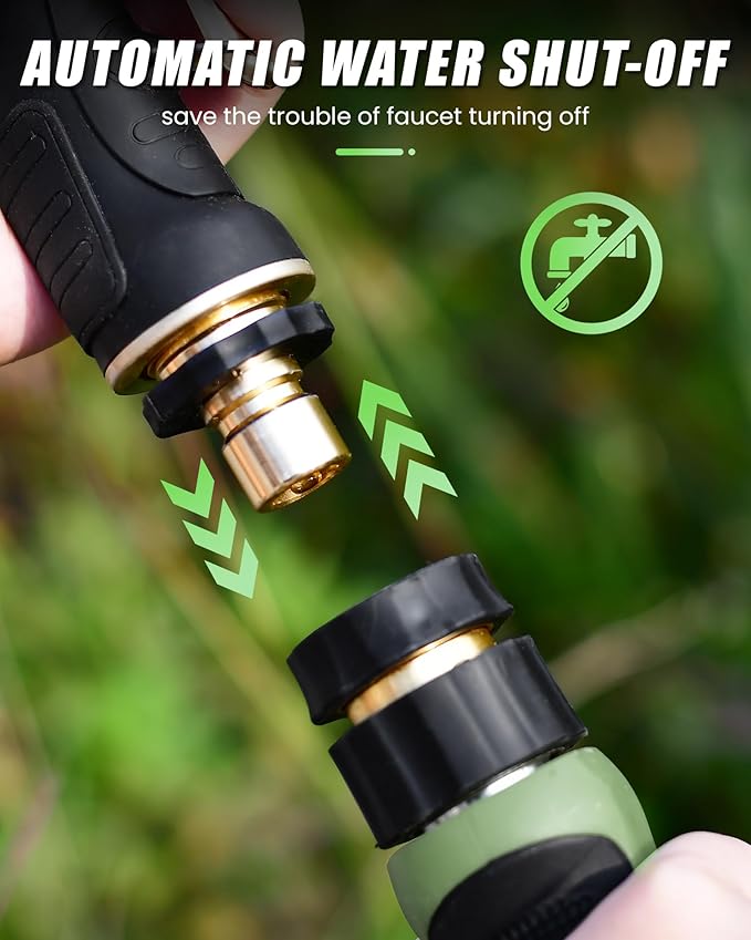 • QUICK-CONNECT FLOW-STOP COUPLERS: This garden hose sprayer comes with a flow stop connector to protect the user from being sprayed when connecting and disconnecting the hose nozzle. Simply unplug the nozzle, and water flow stops instantly—no need to walk back to the faucet to turn off the water.